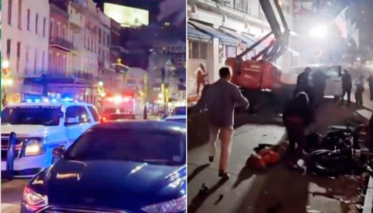 اصطدمت شاحنة بيضاء بحشد من الناس على الجانب الأيسر بين تقاطع شارعي كانال وبوربون.