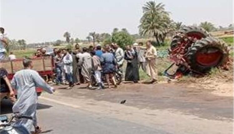 إصابة 7 عمال في تصادم جرار زراعي وتروسيكل بالمنيا..اسماء