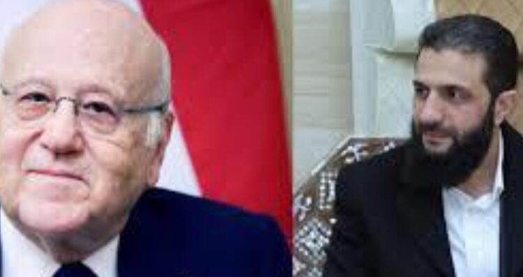 ميقاتى والشرع يبحثان الملفات الطارئة بين لبنان وسوريا