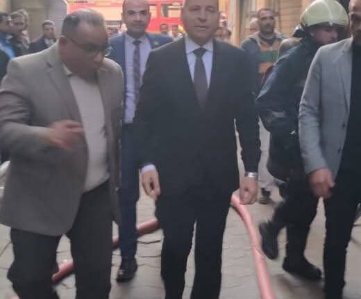 تفقد د. إبراهيم صابر محافظ القاهرة موقع الحريق الذى نشب أعلى العقار رقم ١٨ شارع سوق التوفيقية بحى الأزبكية لمتابعة جهود أجهزة الحماية المدنية للسيطرة على الحريق وعمليات التبريد.