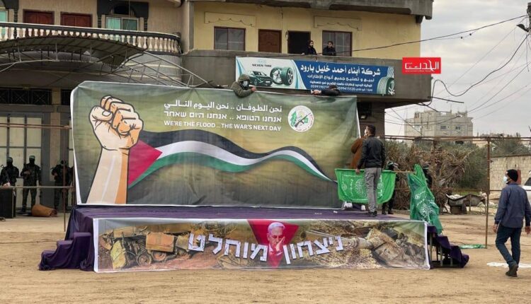 #عاجل | كتائب القسـ.ـ.ــام ترفع لافتة: “نحن الطووفان… نحن اليوم التالي” على منصة تسليم الأسرى الإسرائيليين في دير البلح..صور