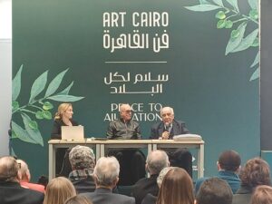 من جهتها تحدثت فاليري ديدييه في الندوة عن تجربة العمل على الكتب التوثيقية في الفن التشكيلي التي عملت عليها بصحبة د.حسام رشوان.