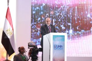 ومن جانبه، قال الدكتور إيهاب أبو عيش نائب رئيس مجلس إدارة الهيئة العامة للتأمين الصحي الشامل، إن مصر حققت إنجازات ملموسة في القطاع الصحي على مدار السنوات الماضية وصولاً إلى إطلاق نظام التأمين الصحي الشامل القائم على التكافل والاستدامة المالية والحوكمة الرشيدة، مشيرًا إلى الاهتمام والمتابعة الدقيقة المستمرة للمنظومة من جانب القيادة السياسية، موضحا أن الظروف والتغيرات التي تمر بها دول العالم تفرض تحقيق أقصى استفادة، لضمان تحقيق التغطية الصحية بكفاءة لجميع المواطنين، مؤكدًا أن المنتدى يعد استكمالًا للجهود السابقة والحالية لتطوير أسس التعاون طويل الأمد القائم على تحقيق المصالح المشتركة بالمنظومة الصحية.
