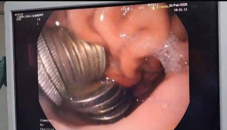 بدأت الواقعة عندما شعر الطفل بآلام شديدة أثناء البلع، مما استدعى نقله إلى المستشفى على الفور. وبعد إجراء الفحوصات الطبية والأشعة اللازمة، تبين وجود العملات المعدنية مستقرة داخل المريء، ما شكل خطورة على حالته الصحية.
