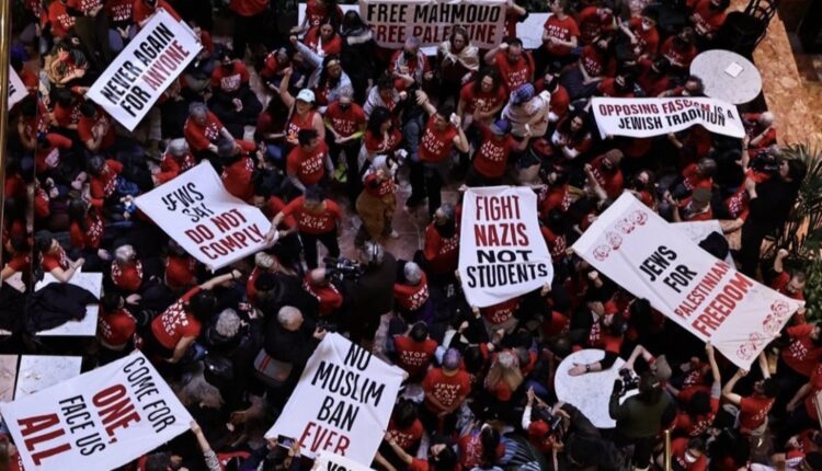 بحسب وكالة “تاس”، نظمت مجموعة من النشطاء التابعين لمنظمة الصوت اليهودي من أجل السلام احتجاجًا داخل برج ترامب، حيث ارتدوا قمصانًا تحمل شعارات مثل “أوقفوا تسليح إسرائيل” و”ليس باسمنا”، للتعبير عن رفضهم للسياسات الأمريكية الداعمة لإسرائيل واعتقال خليل.