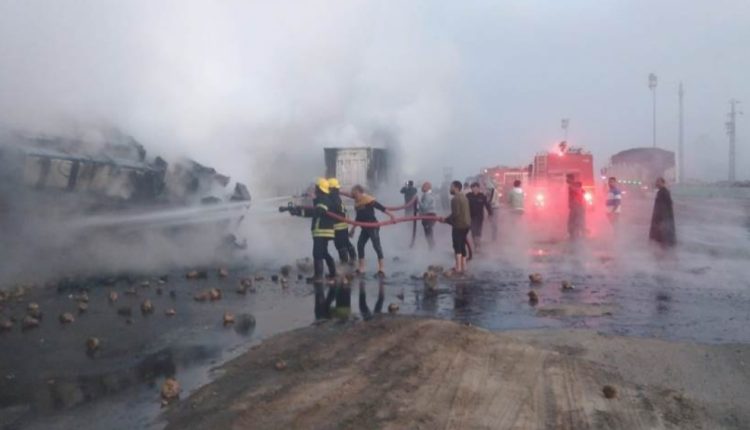 بسبب نشوب حريق مروع بسيارة تريلا.. تفحم جثتى لسائق ومرافقه