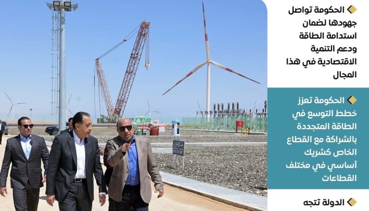 مدبولي..خلال تفقده مزرعة لتوليد الكهرباء بقدرة ٦٥٠ ميجاوات برأس غارب: