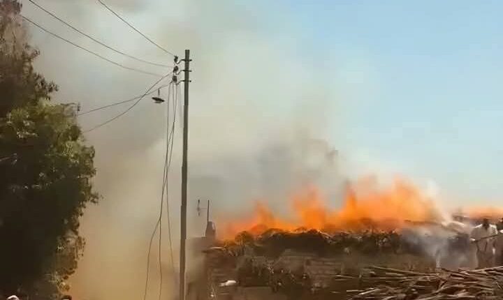 شاهد حريق هائل داخل مزرعة مواشي بقرية العزيزية بالغربية