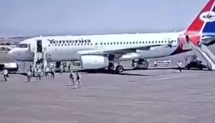 شاهد:لحظة هروب جماعي لركاب طائرة يمنية بمطار صنعاء الدولي قبل لحظات من استهدافها بغارة إسرائيلية #اليمن