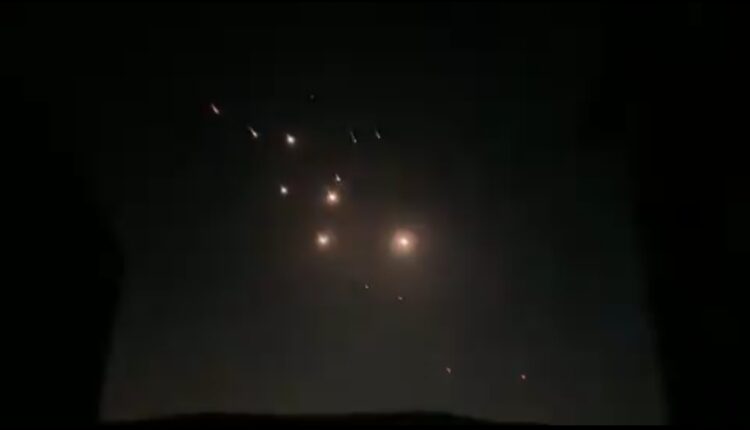 #مشاهد ترصد عشرات الصواريخ الإيرانية تعبر من سماء محيط العاصمة السورية دمشق باتجاه الكيان الصهيوني.
