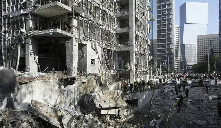 7-شارع مبنى البورصة الإسرائيلية في رامات غان شرق تل أبيب جراء سقوط صواريخ إيرانية.