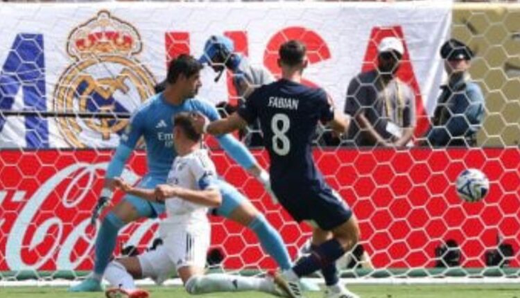 أفتتح فابيان رويز التهديف مبكرا لفريق باريس سان جيرمان بعد مرور 6 دقائق على البداية مستغلا خطأ فادح من أسينسيو مدافع الريال.