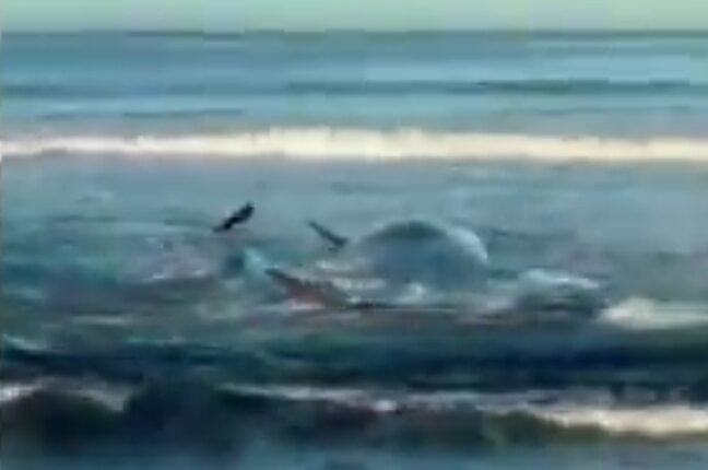 شهدت مدينة تاتياما بمحافظة تشيبا اليابانية ظاهرة غريبة بعد أن جرفت الأمواج ما لا يقل عن أربعة حيتان ضخمة إلى الشاطئ، بحسب ما أظهرته لقطات فيديو بثتها هيئة الإذاعة والتلفزيون اليابانية (NHK). تجمع العشرات من السكان المحليين والفضوليين على الشاطئ لمتابعة المشهد، فيما باشرت السلطات عمليات فحص الحيتان لمعرفة أسباب نفوقها وسبب وصولها للساحل بهذه الصورة غير المعتادة.