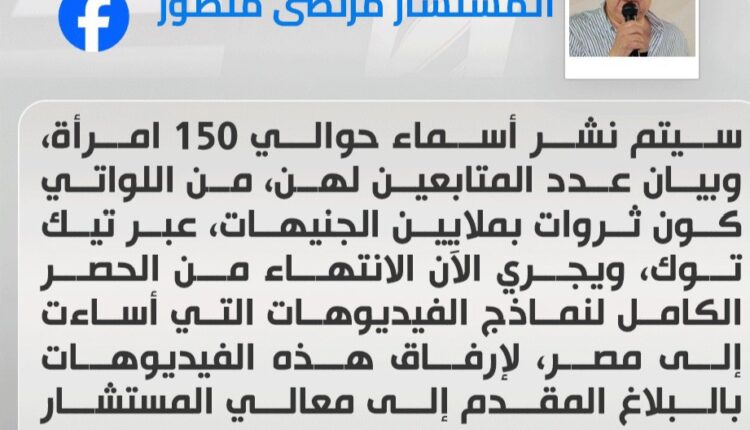 عاجل..مرتضى منصور: سيتم نشر أسماء حوالي 150 امرأة من اللواتي كون ثروات بملايين الجنيهات عبر تيك توك