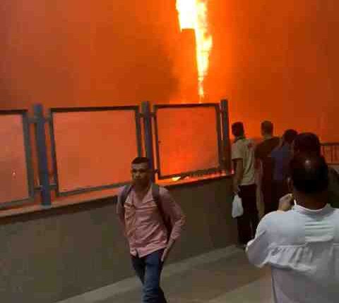 تواصل فرق الحماية المدنية أعمالها للسيطرة على حريق ضخم اندلع في عدة محلات تجارية بميدان المؤسسة قرب محطة مترو شبرا الخيمة. الحريق نشب أولاً في محل عصير ثم امتد إلى محل كشري *الخديوي* ومحل المفروشات *الحسيني* ووصل إلى باكيات وبضائع في محلات مجاورة، مما أدى إلى تصاعد أعمدة دخان كثيفة وألسنة لهب مرئية من مسافات بعيدة.