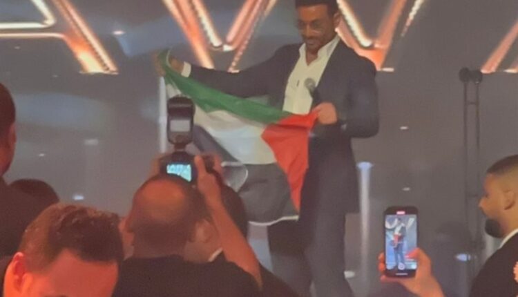 عاجل: #أحمدسعد يرفع علم #فلسطين في حفل دير جيست دعمًا للقضية بعد فوزه بجائزتي أفضل مطرب وأفضل ألبوم