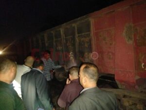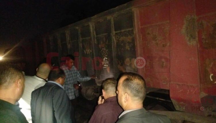 مدير أمن بني سويف يتفقد موقع خروج 7 عربات من قطار بضائع عن القضبان..صور