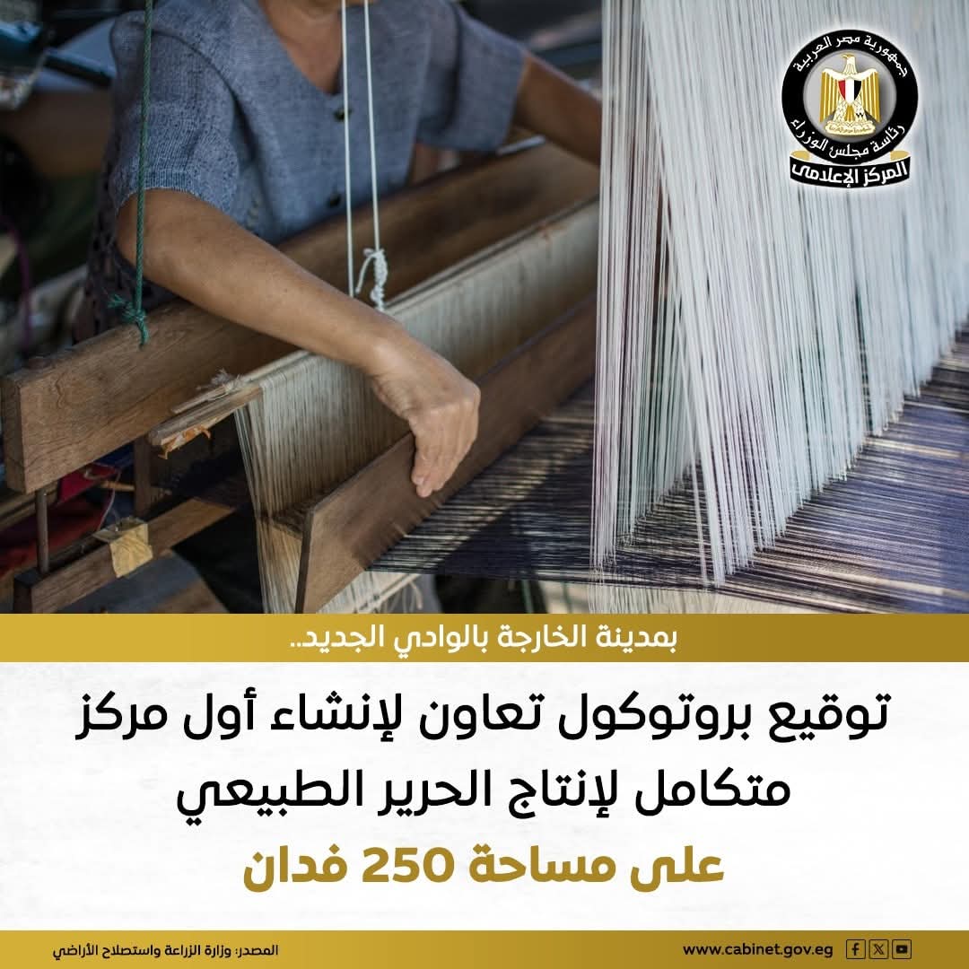 يأتي هذا البروتوكول في إطار توجيهات القيادة السياسية لتوطين صناعة وإنتاج الحرير الطبيعي بمصر، وتعميم التجربة بعد نجاحها على باقي محافظات الجمهورية.