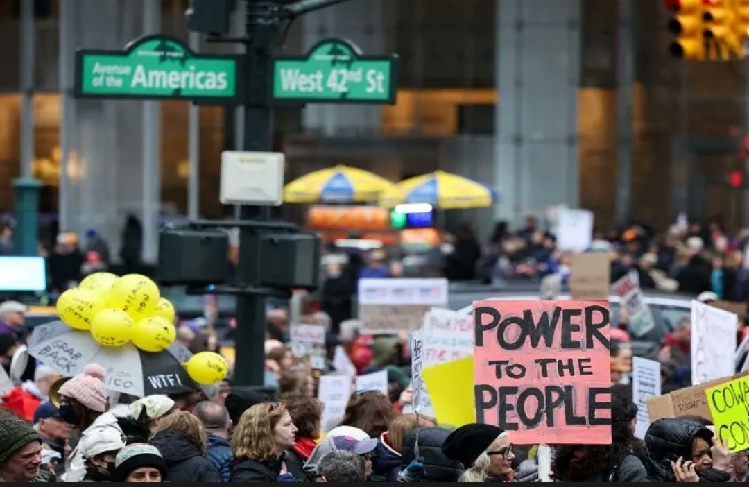 وشاركت في الدعوة للاحتجاج أيضا المرشحة الديموقراطية للانتخابات الرئاسية لعام 2024 كامالا هاريس، ونجم هوليوود روبرت دي نيرو.