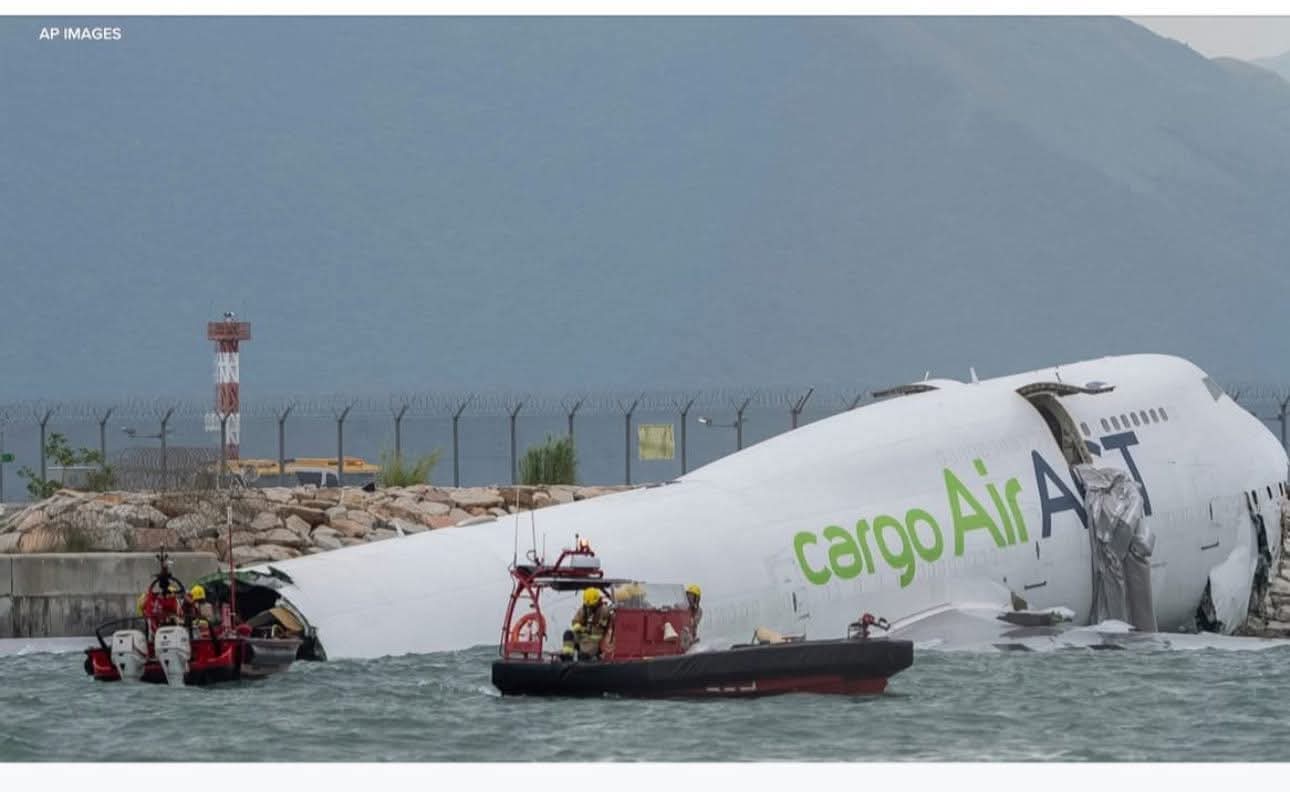 مصرع شخصان بعد اصطدام طائرة شحن بمركبة أرضية أثناء هبوطها في هونج كونج قبل انحرافها عن المدرج والتحطم في البحر فجر الاثنين.
