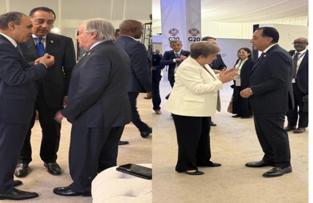 حدث على هامش مشاركته نيابة عن الرئيس عبد الفتاح السيسي، رئيس الجمهورية، في قمة مجموعة العشرين (G20) لعام 2025 بمدينة جوهانسبرج في جنوب أفريقيا، إلتقى الدكتور مصطفى مدبولي، رئيس مجلس الوزراء، مساء اليوم، على هامش جلسات اليوم الأول للقمة، كلاً من أنطونيو جوتيريش، سكرتير عام الأمم المتحدة، وكريستينا جورجيفا، مديرة صندوق النقد الدولي، وذلك بحضور الدكتور بدر عبدالعاطي، وزير الخارجية والهجرة وشئون المصريين بالخارج.