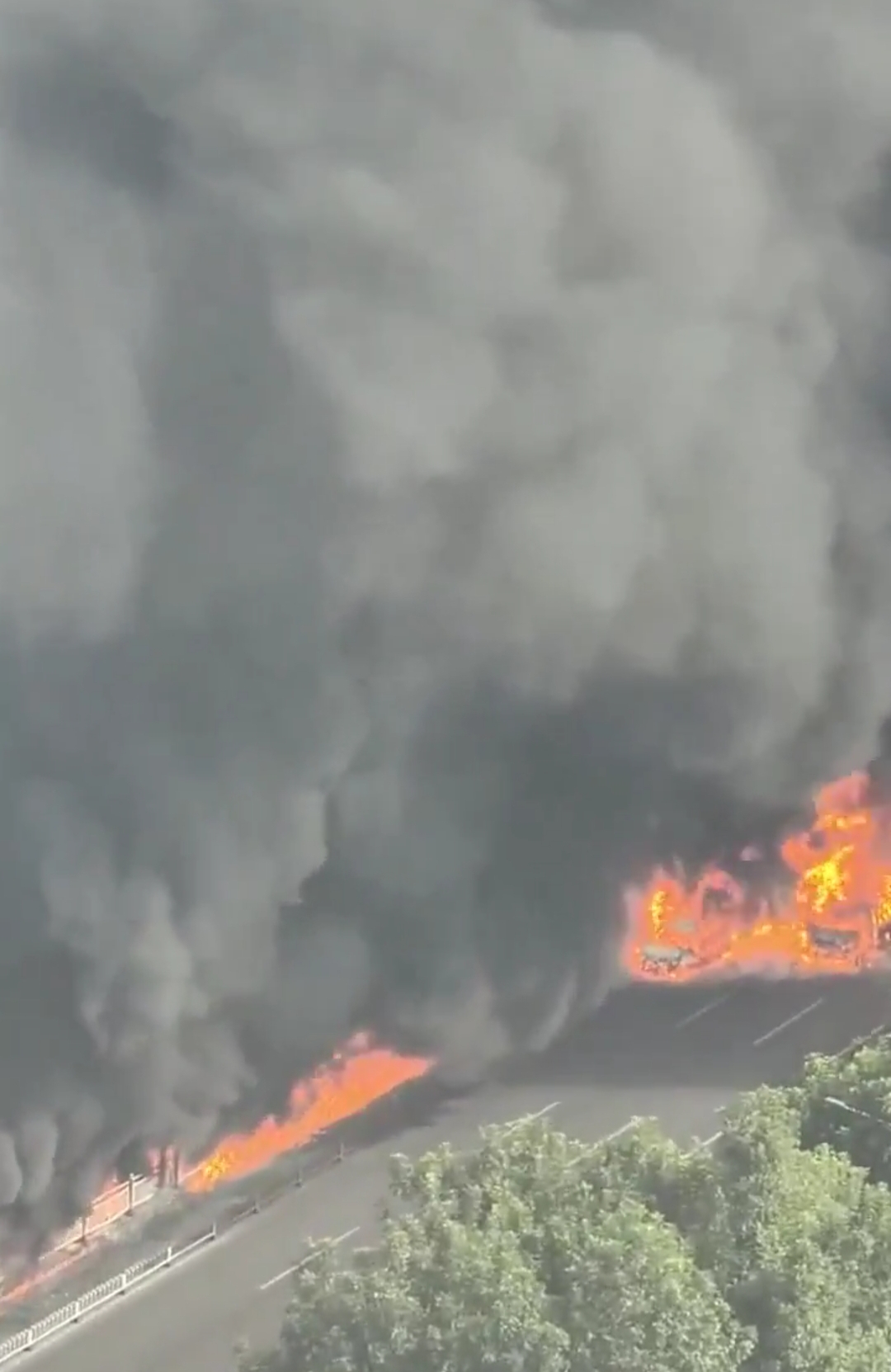 الواقعة بدأت عندما اشتعلت حمولة قابلة للاشتعال داخل شاحنة تسير على الطريق، ما أدى إلى انفجار ضخم وتفاعل متسلسل تسبب في انتشار النيران بشكل سريع ومخيف.