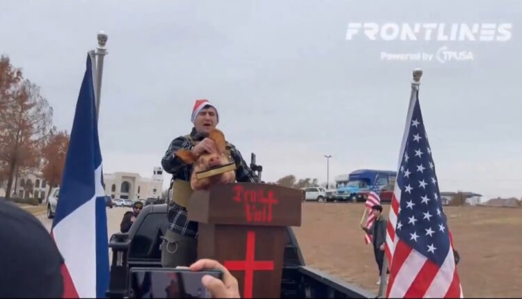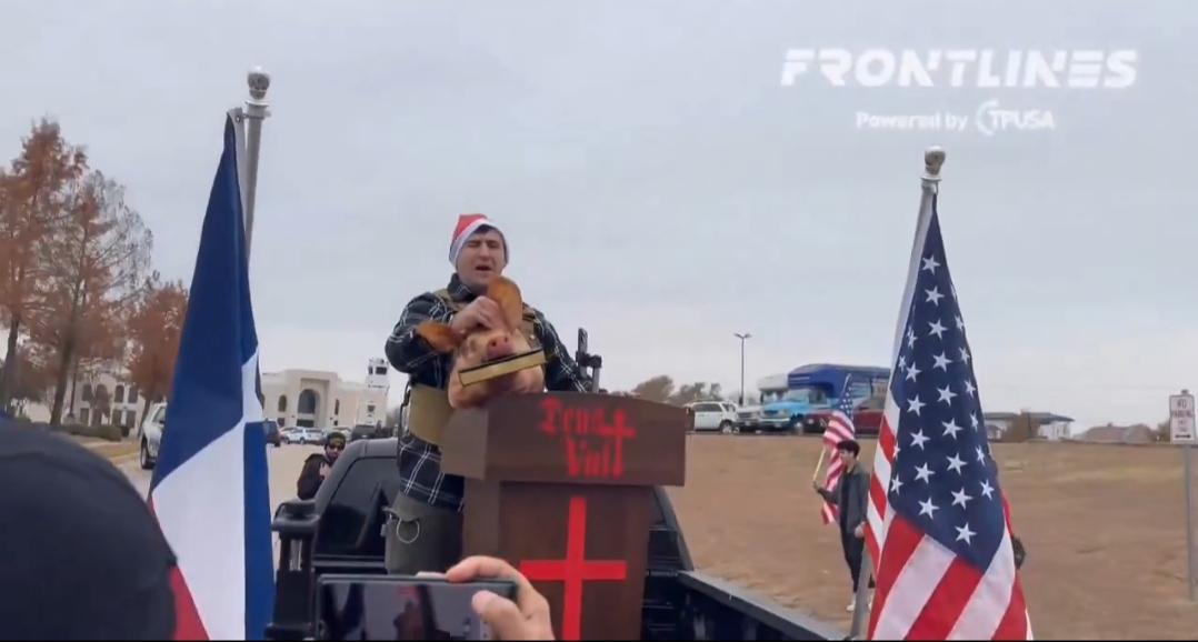 حشو نسخة من “القرآن الكريم” داخل فم خنزير خلال مظاهرة معادية للإسلام في بلانو – تكساس الأمريكية.. فيديو