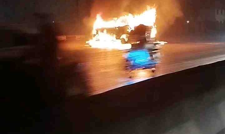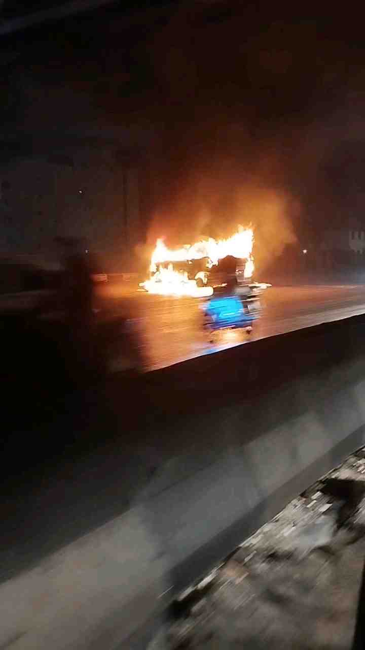 #العناية الإلهية تنقذ سائق بعد إحتراق سيارة أجرة بمنطقة #البراجيل.. فيديو