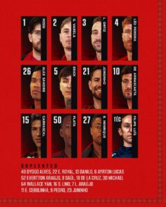 أما تشكيل فلامنجو فجاء كالتالي: حراسة المرمى: أجوستين روسي