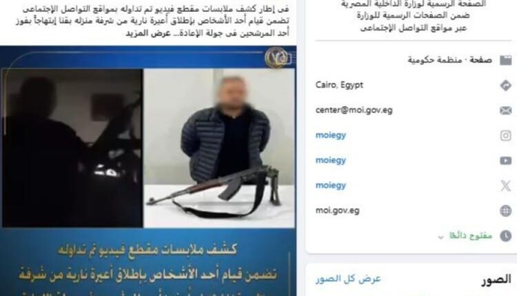 وبالفحص تم تحديد وضبط مرتكب الواقعة وتم ضبط السلاح الناري.، بحسب الصفحة الرسمية لوزارة الداخلية على موقع التواصل الاجتماعي “فيس بوك”.