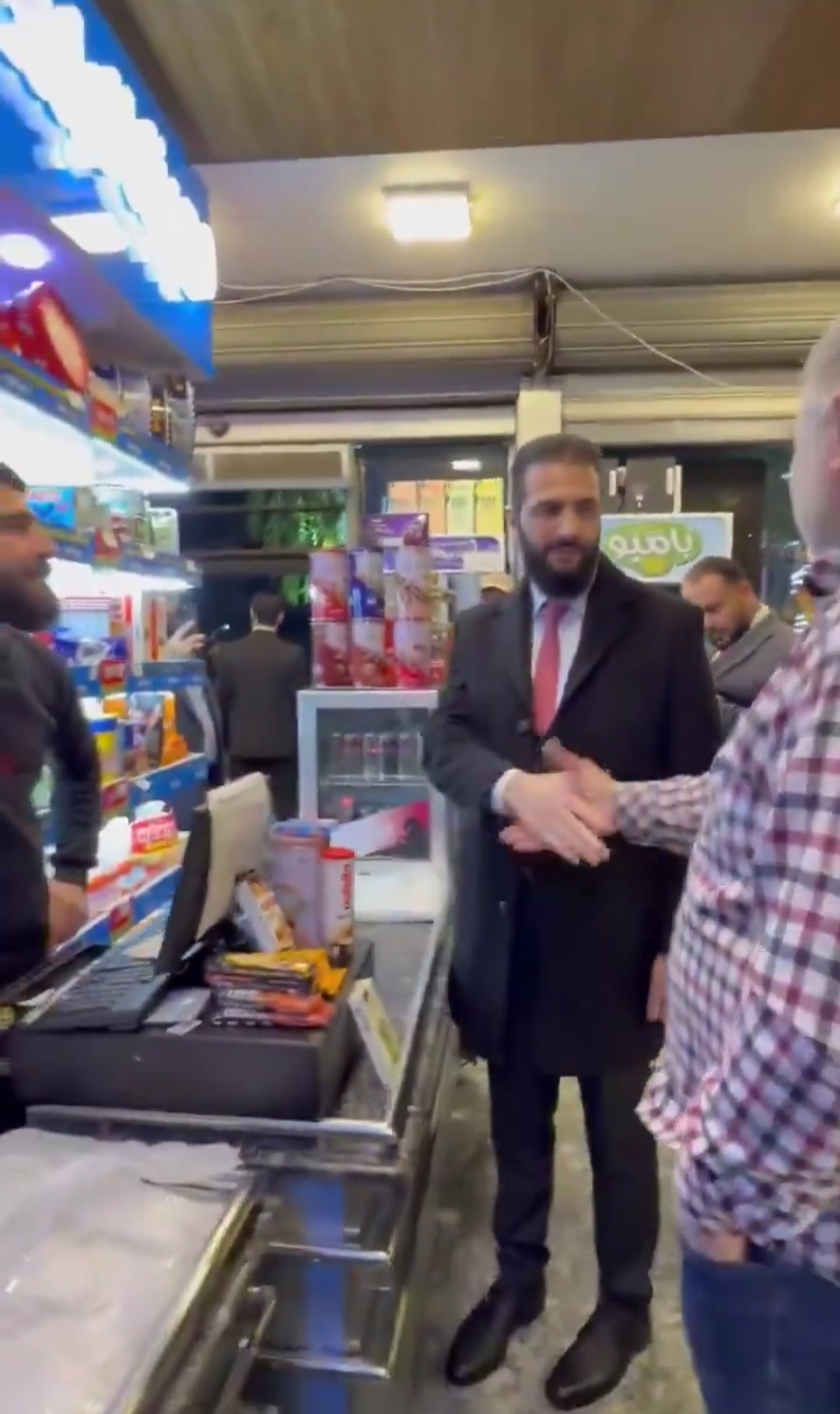 في الفيديو، الذي قال ناشروه إنه صُوّر مساء الإثنين، يظهر الشرع وهو يشرب القهوة من أحد محلات الشارع الدمشقي الشهير. ويسأل الشرع صاحب المحل عن اختصاصه، في فيديو مدته 45 ثانية.