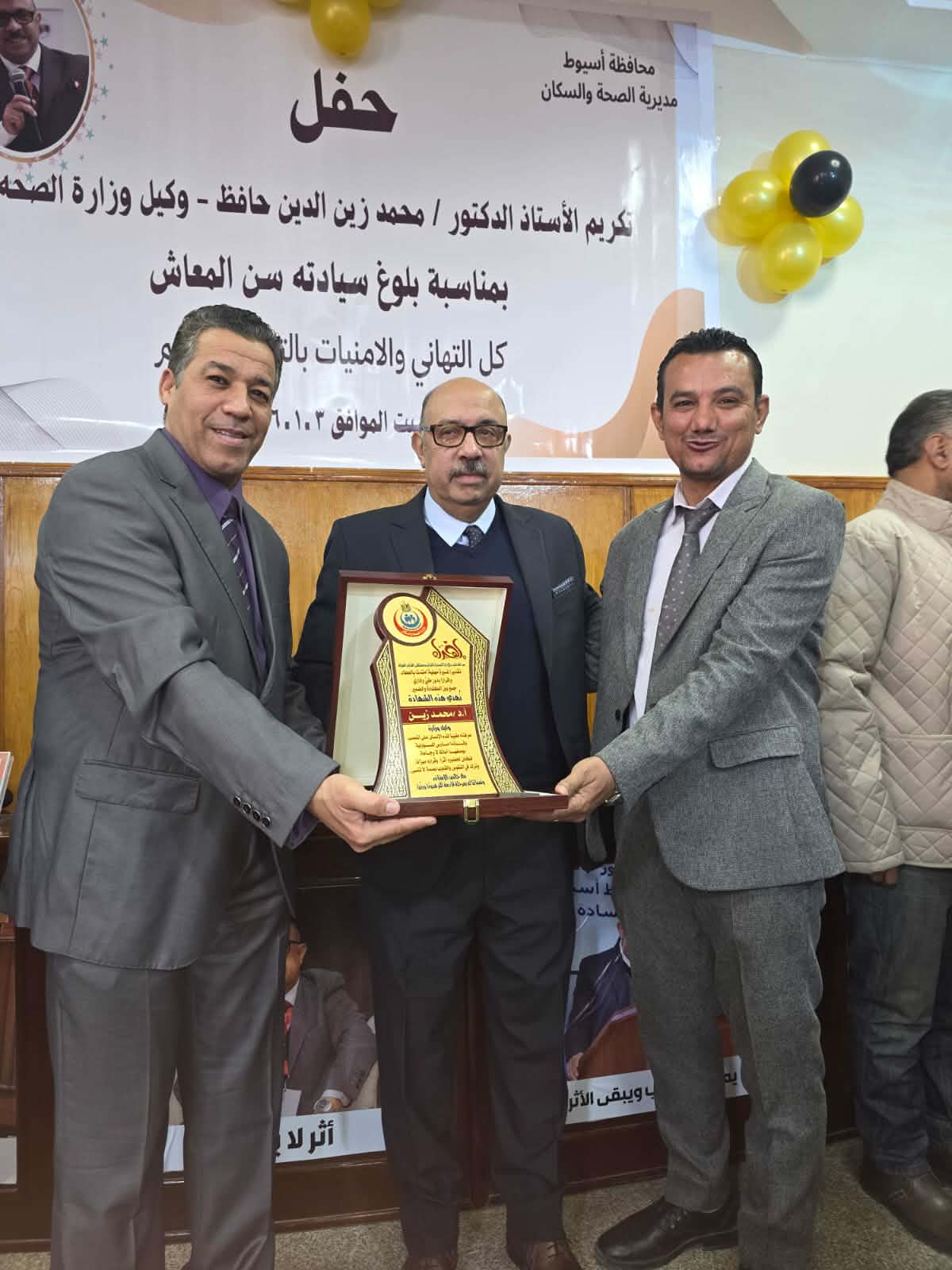 في لفتة تقدير ووفاء لمسيرة حافلة بالعطاء، نظّمت الإدارة الصحية بالغنايم حفل تكريم للسيد الأستاذ الدكتور محمد زين الدين حافظ، وكيل وزارة الصحة بأسيوط ومستشار السيد المحافظ، وذلك بمناسبة عيد ميلاده الستين.