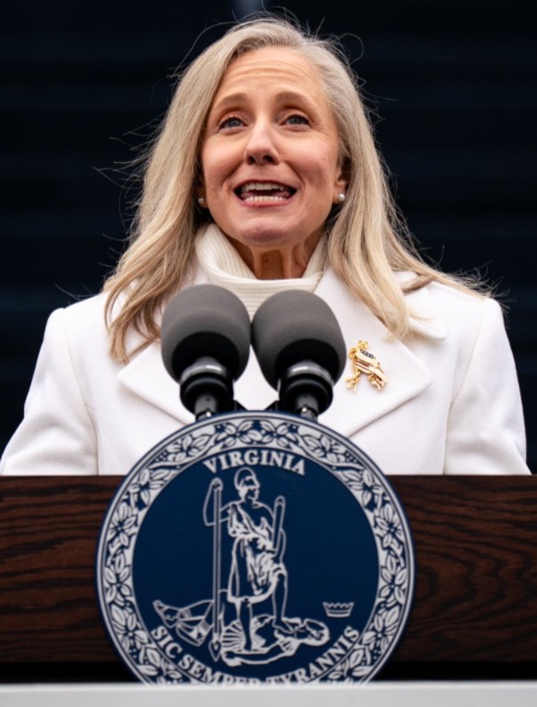 ويُعد تنصيبها حاكمةً للولاية، لتكون الحاكمة الـ75، حدثاً تاريخياً غير مسبوق، إذ لم يشغل هذا المنصب سوى الرجال منذ أن أصبحت فيرجينيا ولايةً عام 1776.