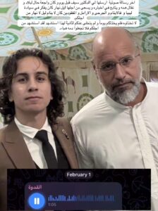 وكتب أحمد القذافى على الرسالة الصوتية: آخر رسالة صوتية ارسلها لي الدكتور سيف قبل يوم وكان واجعة حال لبلاد ونقال همه ويتابع في اخباره ويسعى من أجلها ليل نهار كان يفكر في سيادة ليبيا فالايتام والجرحى والارامل و المفقودين كان لا ينام ليل لا نهار من اجلكم، لا تخذلوه فلم يخذلكم يوماً و لم يتخلى عنكم لثانية لهذا استشهد لقد استشهد من اجلكم فلا تجعلوا دمه هباء.