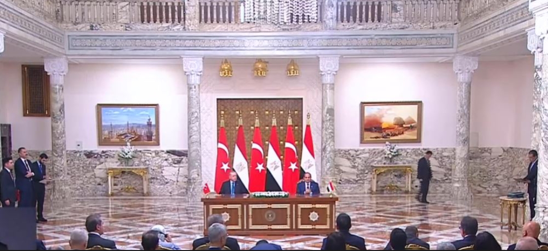 جاء ذلك عقب انتهاء جلسة مباحثات بين السيد الرئيس عبد الفتاح السيسي، والرئيس رجب طيب أردوغان، رئيس الجمهورية التركية، بقصر الاتحادية .