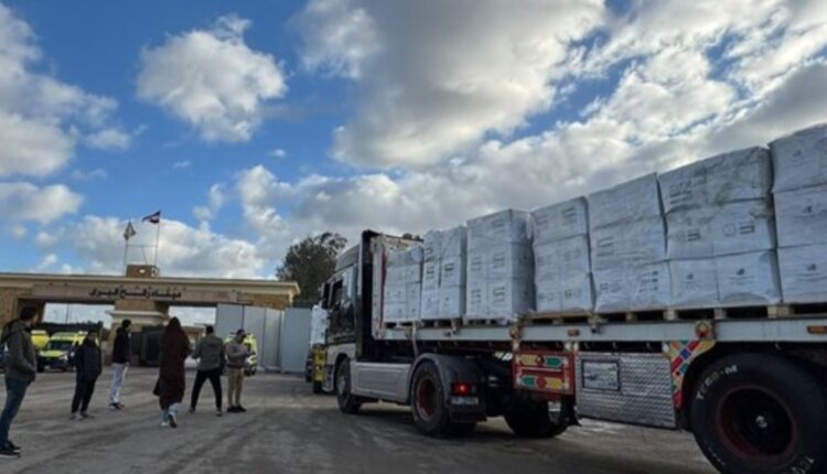 عاجل- تمهيدًا لدخولها غزة.. عبور 25 شاحنة مساعدات إماراتية إلى كرم أبو سالم