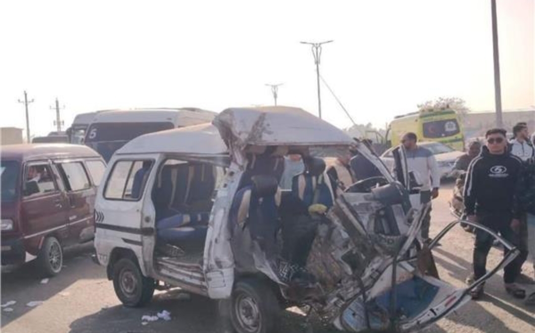 عاجل-مصرع وإصابة 12 تلميذًا فى تصادم مروع بين سيارة نقل ومينى باص مدرسة..