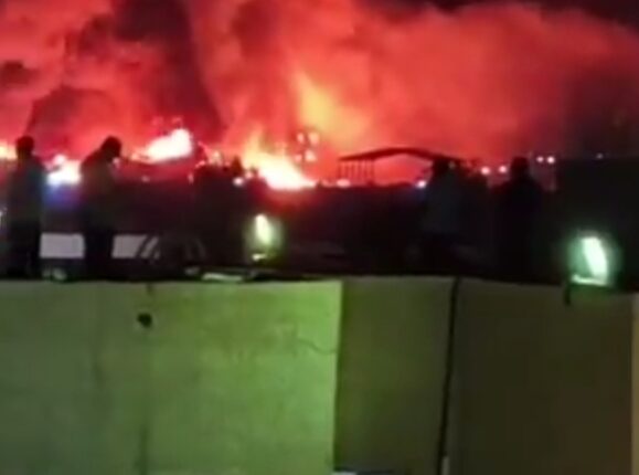 عاجل- حريق ضخم يندلع في مكاتب ومستودعات شركتي هاليبرتون وKBR الأمريكيتين بالبصرة عقب هجوم بمسيرة.. فيديو