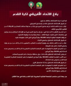 نشر الاتحاد المغربي لكرة القدم قرارات الاتحاد الإفريقي لكرة القدم كاف، بشأن سحب لقب كأس أمم إفريقيا 2025 من السنغال، ومنحة للمنتخب المغربي مستضيف البطولة.