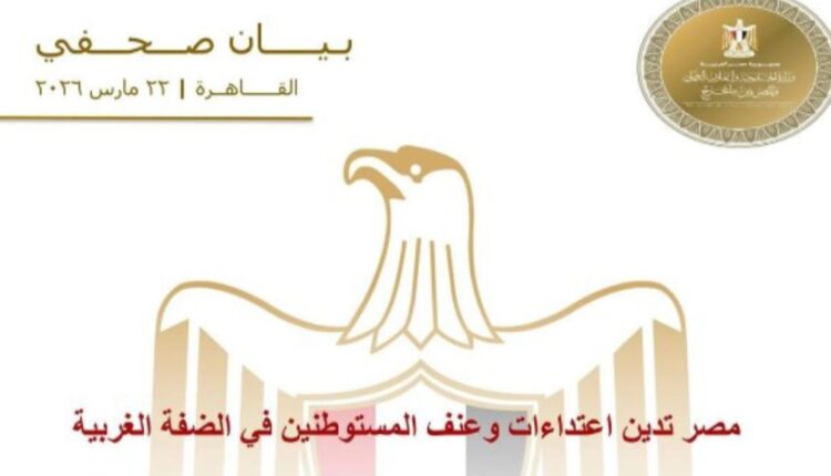 عاجل- مصر تدين اعتداءات المستوطنين في الضفة الغربية وتطالب بحماية الفلسطينيين